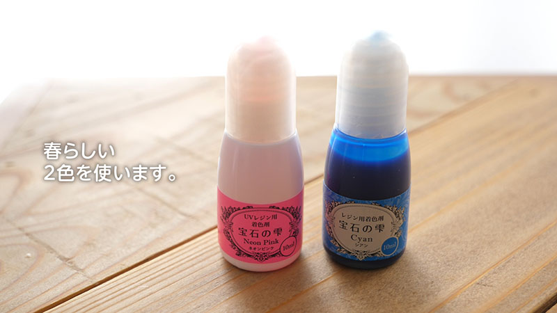 レジン液でコーティングするとさらに透明感がUPしてつるっとした可愛い仕上がりになります。